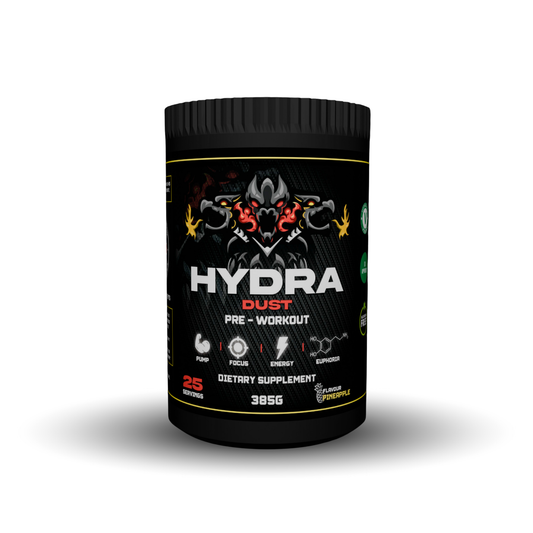 Hydra Dust Pre Workout - Our unique, scientifically formulated pre-workout for the most locked-in, pumped, energetic and euphoric gym session of your life.